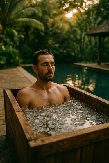 Cold plunge (bain glacé) dans un cadre tropical